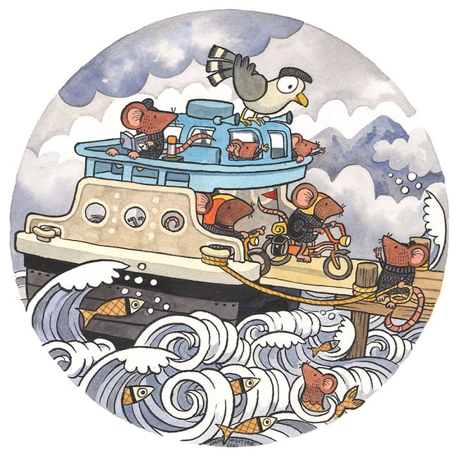 Pack of 5 cards, each with a different design, 148 x 148mm, with natural brown envelopes. Early inspiration images for the book series that is now the Adventuremice!